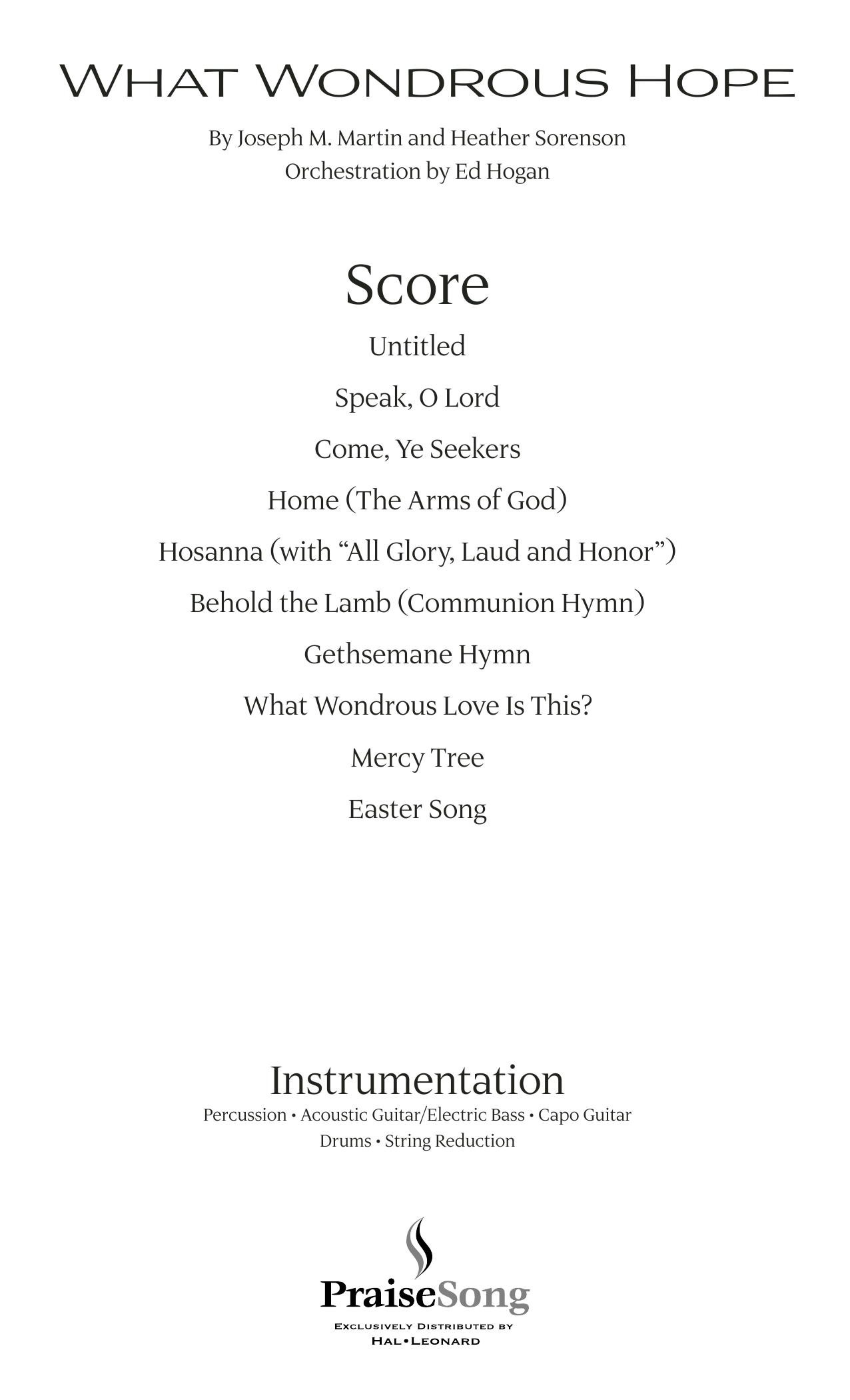 Following the success of The Thrill of Hope for the Christmas season comes What Wondrous Hope for Lent, Holy Week and Eastertide. Mingling traditional and contemporary elements, this cantata tells the story of Christ's ministry, passion and resurrection with thoughtful narration by Pamela Stewart. Great hymnody and modern worship songs are woven together in a way that is especially useful for the traditional/transitional church. Bringing the various services of the season into community, this work provides for two distinct endings for optimal programming flexibility. A full line of support products is available to assist learning and performance. This outstanding balance of ancient and modern music is a thoughtful choice for churches exploring a diversity of musical styles in worship.