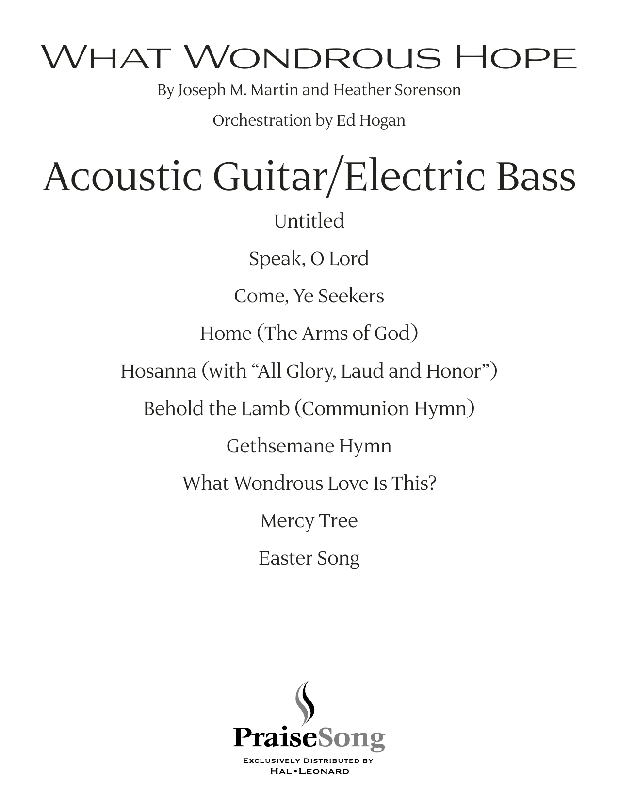 Following the success of The Thrill of Hope for the Christmas season comes What Wondrous Hope for Lent, Holy Week and Eastertide. Mingling traditional and contemporary elements, this cantata tells the story of Christ's ministry, passion and resurrection with thoughtful narration by Pamela Stewart. Great hymnody and modern worship songs are woven together in a way that is especially useful for the traditional/transitional church. Bringing the various services of the season into community, this work provides for two distinct endings for optimal programming flexibility. A full line of support products is available to assist learning and performance. This outstanding balance of ancient and modern music is a thoughtful choice for churches exploring a diversity of musical styles in worship.