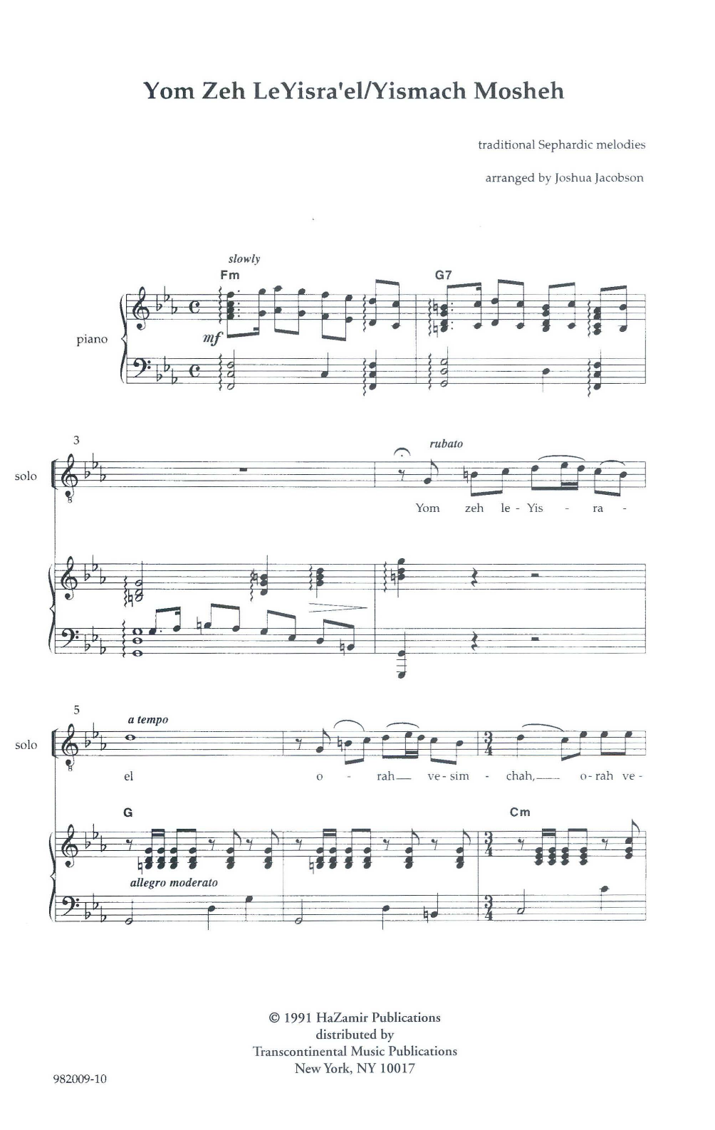 A medley of 2 traditional Sephardic melodies in a lively setting. The texts are taken from the Sabbath liturgy and table songs.