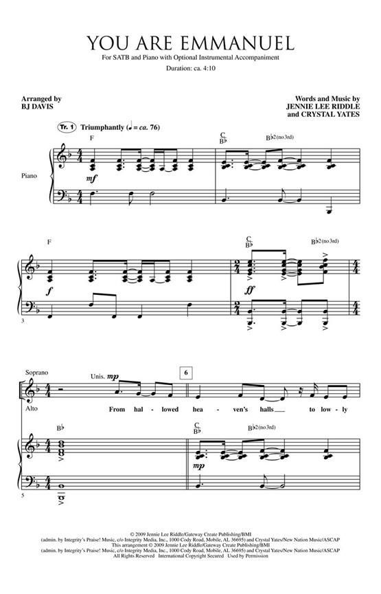 The lyrics, God, You're here to rescue and heal us; Humble Prince, You are Emmanuel embody this song of praise to the One who came to save us. Available separately: SATB, CD Accompaniment Trax, Orchestration. Duration: ca. 4:10.