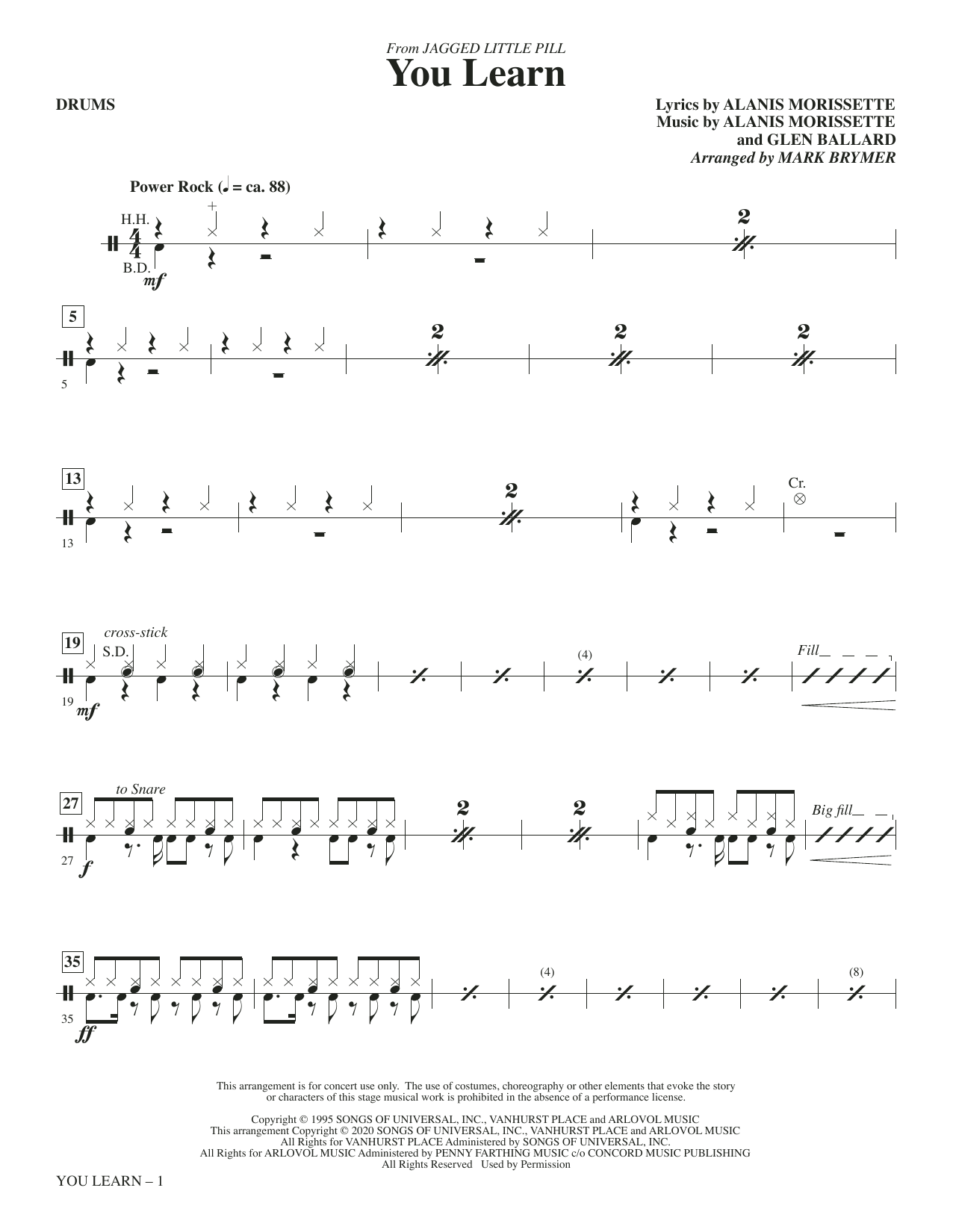 Alanis Morisette's 1995 mega-hit album Jagged Little Pill has been adapted for the Broadway stage, with critics placing it amongst the best of the jukebox musicals. You Learn is an alternative rock account of the importance of learning from a poor decision and moving forward.