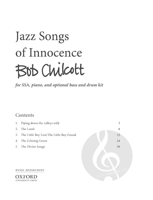This vibrant collection presents five jazzy settings of poems from William Blake's Songs of Innocence. Chilcott challenges the expectation of the listener by setting each classic text in a different j...