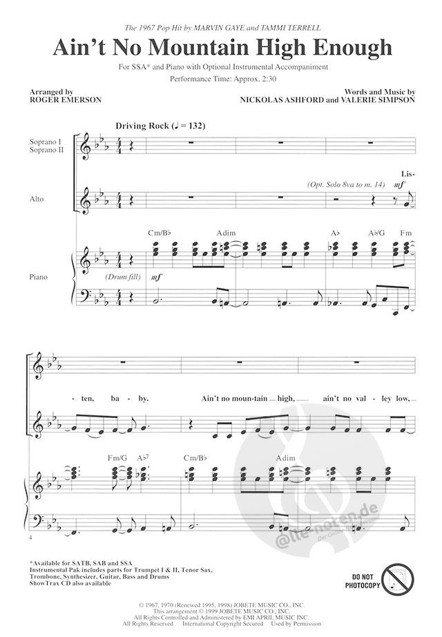 Dieser Nummer-1-Hit von Diana Ross aus dem Jahr 1970 hat einen großen Reiz. Fantastischer Abschluss! Verfügbar: SATB, SAB, SSA, Instrumental Pak, ShowTrax CD. Aufführungsdauer: ca. 2:30.