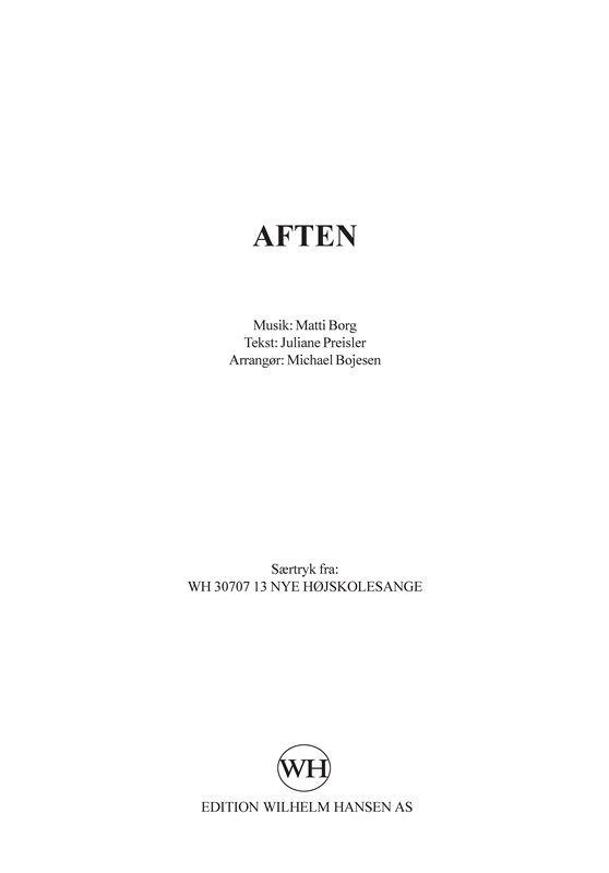 Matti Borgs AFTEN (Et hav der vugger sig til ro) arrangeret for lige stemmer SSAA af Michael Bojesen. Tekst af Juliane Preisler.