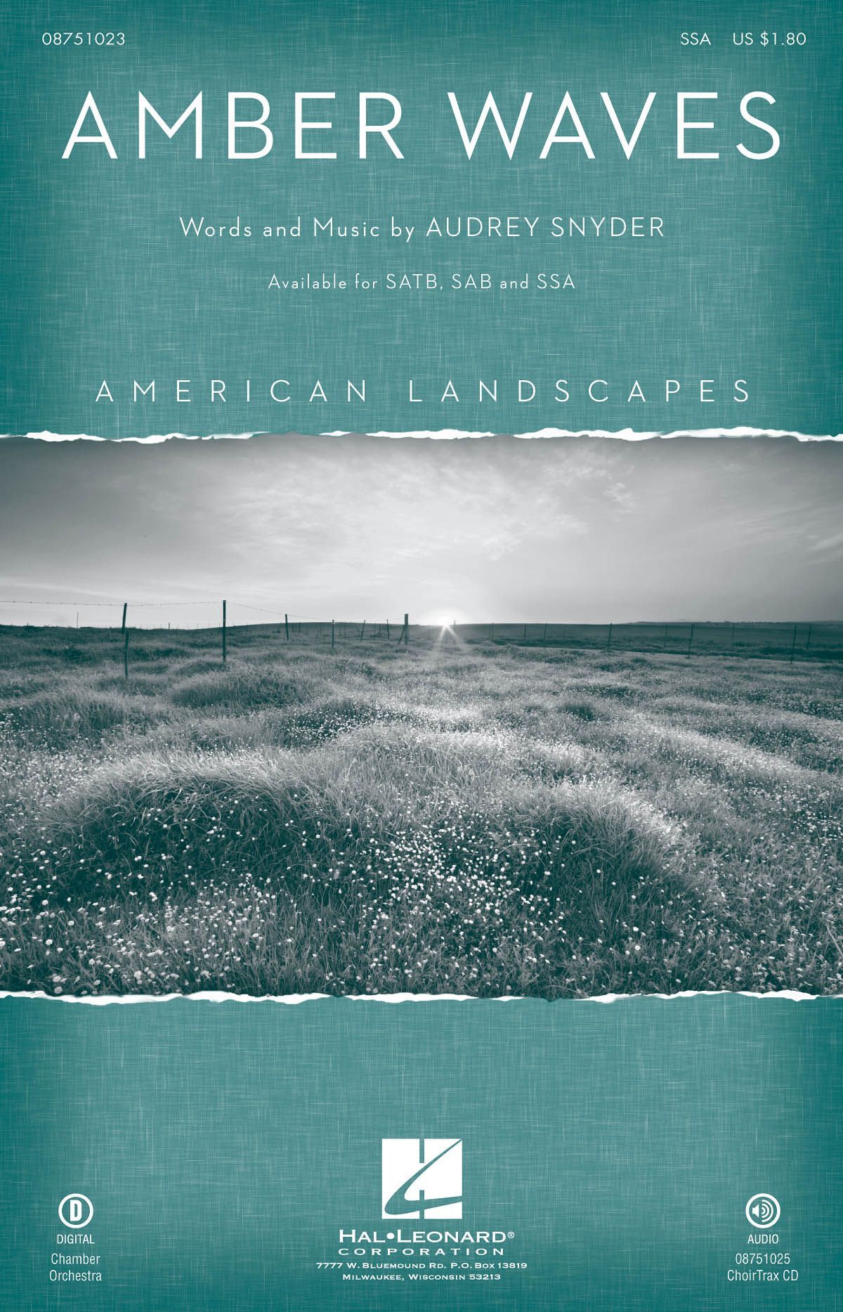 The grandeur and expansiveness of the Heartland is explored in this choral tone poem that celebrates the beauty of the American landscape. An ideal concert and festival work, it may be performed by voices and piano or with the optional orchestration. Available separately: SATB, SAB, SSA, ChoirTrax CD. Duration: ca. 3:50.