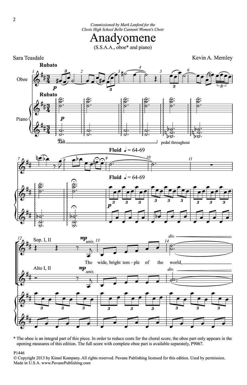 IMPRESSIONS is a set of three outstanding pieces by Kevin Memley for treble voices. The texts are favorites of many and Kevin's treatments are exquisite masterpieces. Although the 3 selections are released separately, they are best presented as a trilogy. High school and college.