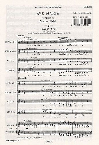 Gustav Holst's Ave Maria is scored for Double SSAA Choir a cappella.