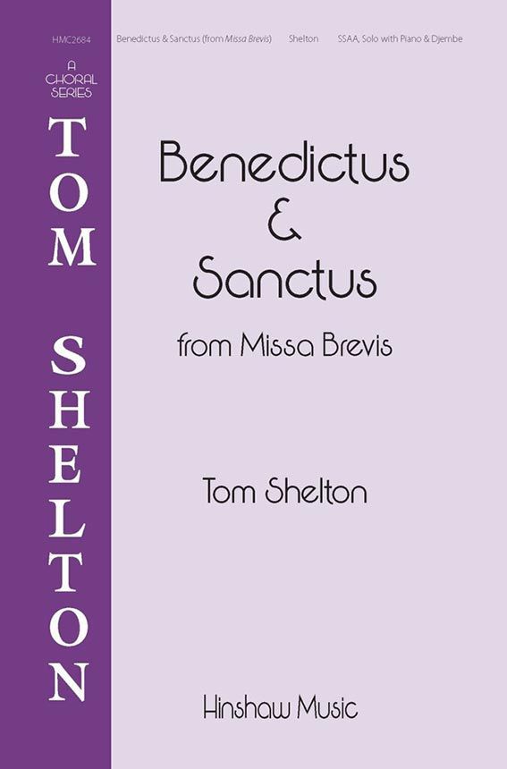 Benedictus and Sanctus for SSA with Piano and Djembe is part of the Missa Brevis for Treble Voices by Tom Shelton. The composition begins with a unison Benedictus and expands into a 3-part canon, which in turn leads into a rhythmic Sanctus (with djembe and overlapping parts), concluding with a Hosanna which overlaps the return of the opening Benedictus. A wonderful addition to the treble repertoire, suitable for a variety of concert settings.