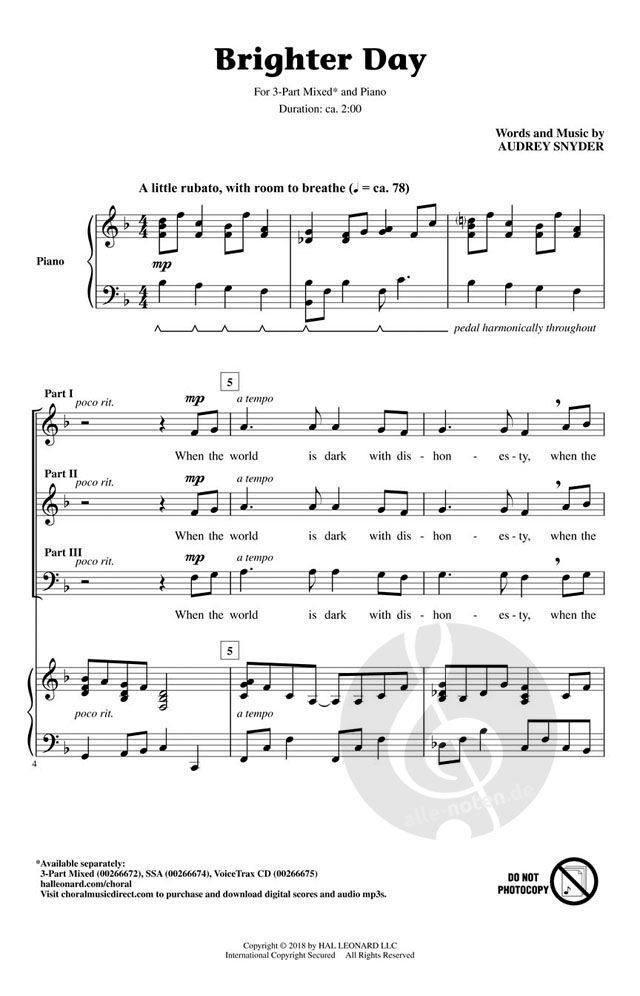 Master composer and educator Audrey Snyder knows the importance of hope in the lives of young people. In this original song she lifts up the need for hope of a brighter day.