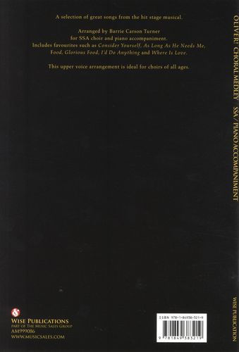 A selection of songs from the world-famous stage production, arranged by Norman Leyden for SSA chorus with Piano accompaniment. The songs may be performed individually, or as a croud-pleasing medley that includes such favourites as Consider Yourself and Where Is Love. This upper voice arrangement is also ideal for younger choirs, schools and junior choral groups.