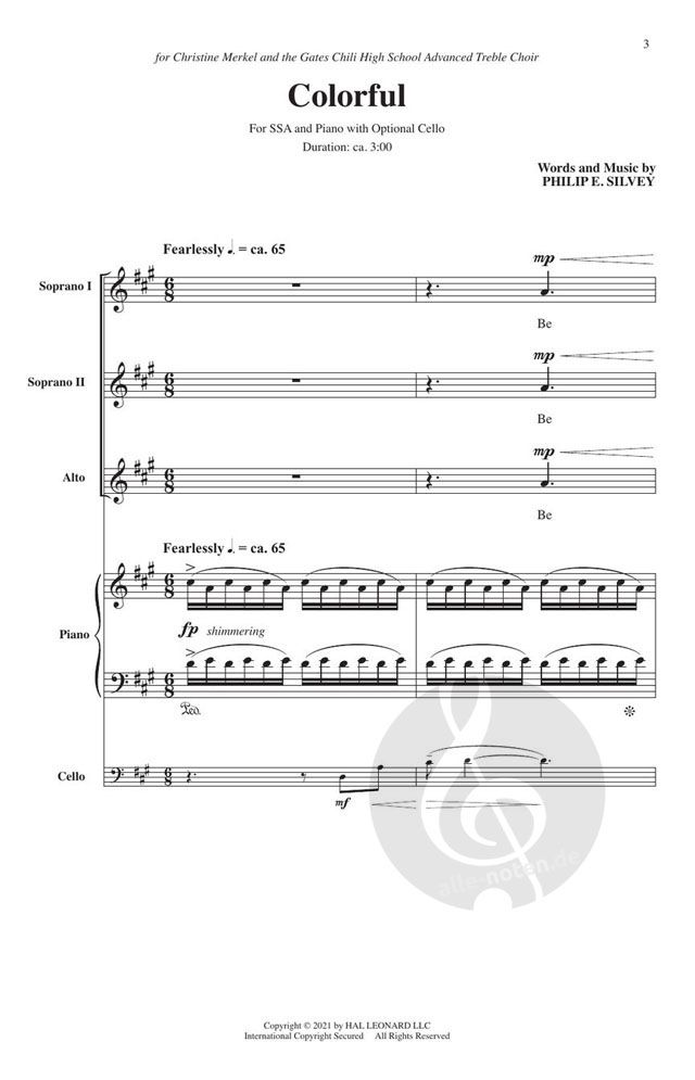 - Opt. Besetzung Frauenchor (SSA), Klavier und Cello