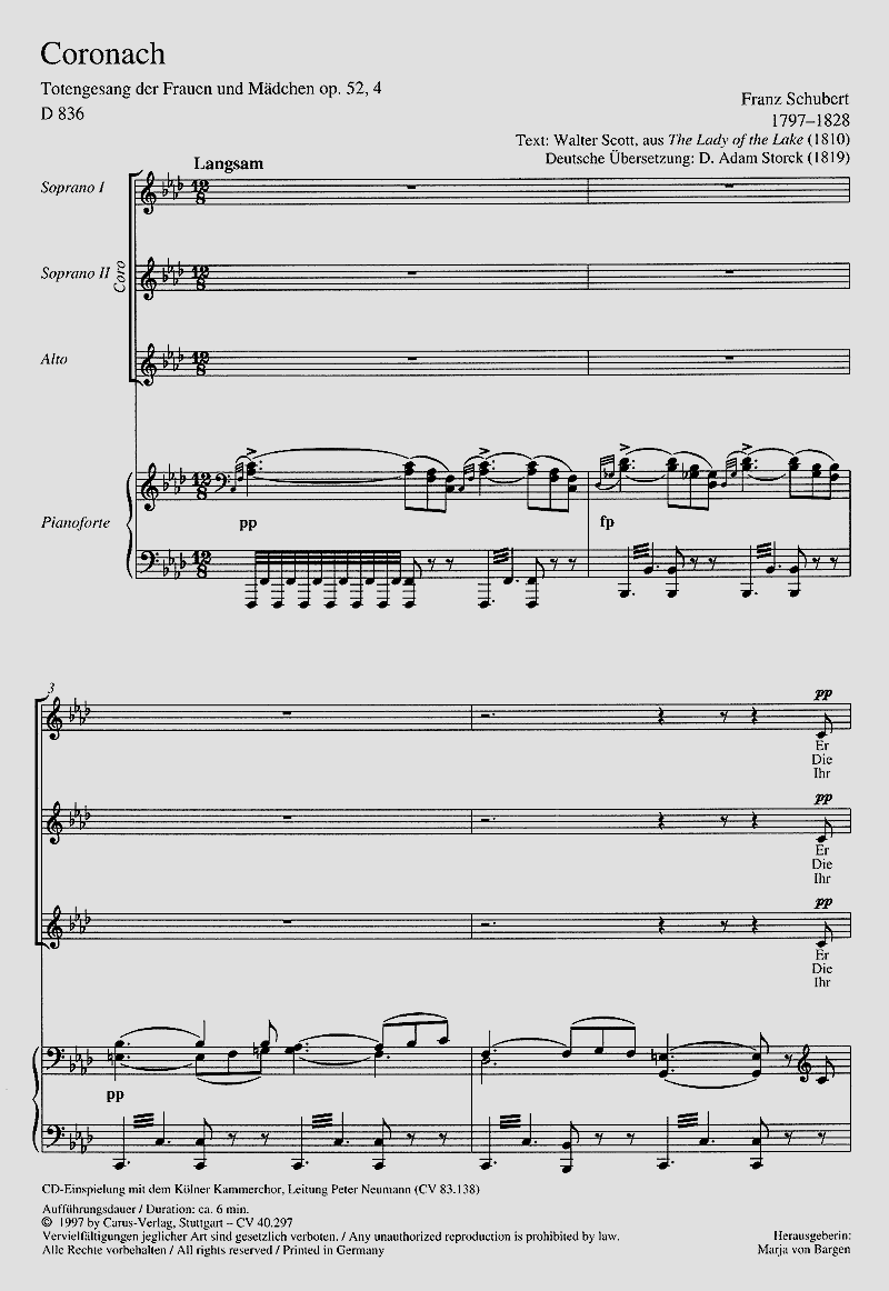 Totengesang der Frauen und Mädchen - Coro SSA, Pfte