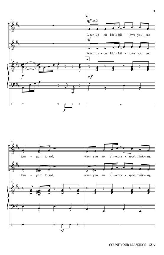 One of the happiest of all hymns is now wonderfully decorated with jubilant harmonies and a fantastic piano part. Bouncing its way into yourheart, this thanksgiving message cultivates an 'attitude of gratitude' in your people. Not hard, but rich with interesting musical moments, this hymn adaptation will be an instant favorite. Percussion part included. Available separately: SSA, SAB. Duration: ca. 2:43.
