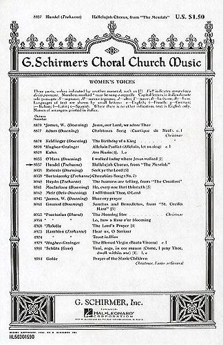 Hallelujah Chorus arranged for SSA Choir and Piano or Organ.