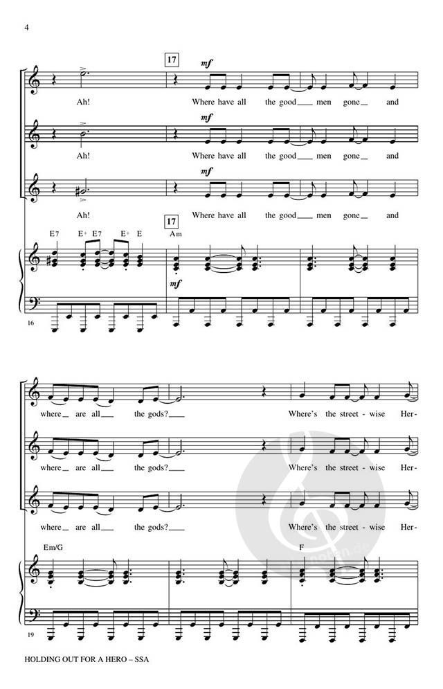Women's choirs and show choirs will LOVE this intense and powerful arrangement of Bonnie Tyler's huge hit from 1983 that is still popular today. Full of strong harmonic writing that begs for choreography! Fantastic dance track, too!