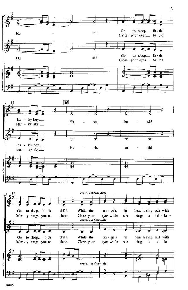 Sally Albrecht has taken the traditional spiritual 'Hush,' added a Christmas text, and hints of three carols ('Angels We Have Heard on High,' 'Infant Holy, Infant Lowly,' and 'Silent Night'), to create a new holiday masterpiece. It's available in editions for school and church choirs of every age and size. Easy, supportive piano accompaniment. Do not miss this stunning, touching, gentle choral work for Christmas. Linger on the 'sh' of 'hush' for a special vocal effect.