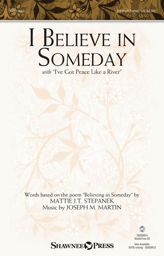 Uses: Children, General, Youth Scripture: Psalm 72:3, Isaiah 48:18, Isaiah 66:12 Here is an encouraging and positive statement of faith that will raise spirits from despair to hope. Taken from the inspiring poetic legacy of young peacemaker and author Mattie J. T. Stepanek, this Heartsong is written with child-like wonder, but with a profoundly deep understanding of human dreams and aspirations. Infused with a sense of community, the ballad grows gradually into a statement of the well-known spiritual I've Got Peace Like a River, offering an opportunity for congregational participation.
