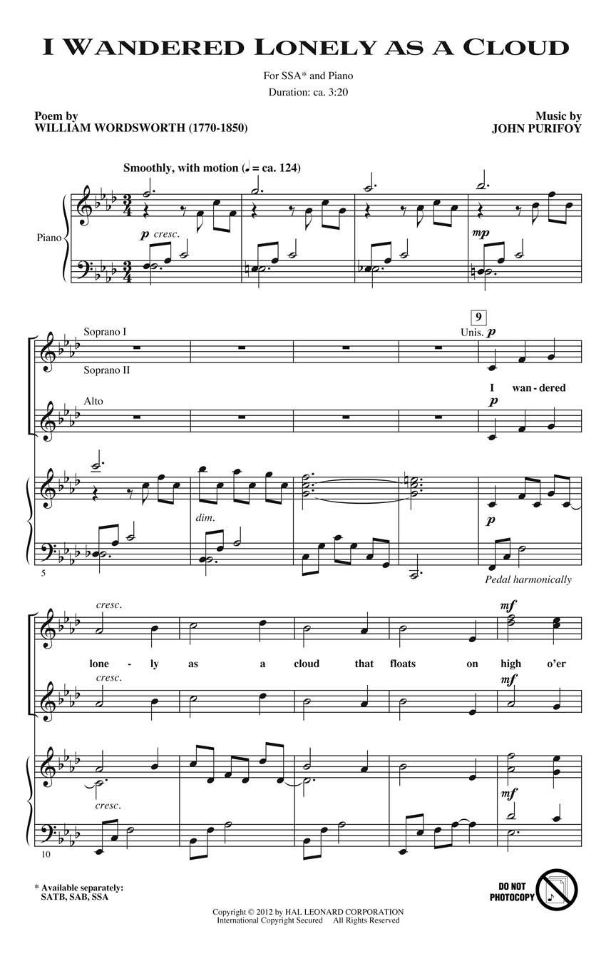 Here is famous Daffodils text by William Wordsworth in a sweeping and romantic setting for concert choirs, strophic with a contrasting middle section. An excellent festival or contest selection feature!