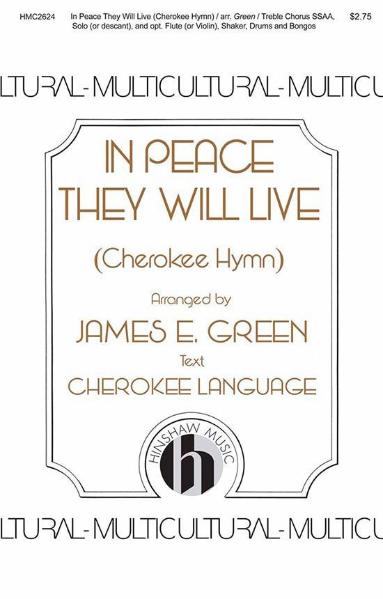 IN PEACE THEY WILL LIVE (or also known as AMAZING GRACE or GOD'S CHILD) is a song that holds great meaning to the Cherokee people and it is often referred to as the CHEROKEE NATIONAL ANTHEM.Ÿ Here, composer James Green takes David Huff's setting of AMAZING GRACE and adapts it into the Cherokee language (pronunciation guide included) with treble chorus, solo descant, optional flute or violin, shaker, drum and bongos or congas.Ÿ This would make a great addition to your American Music Month concert.