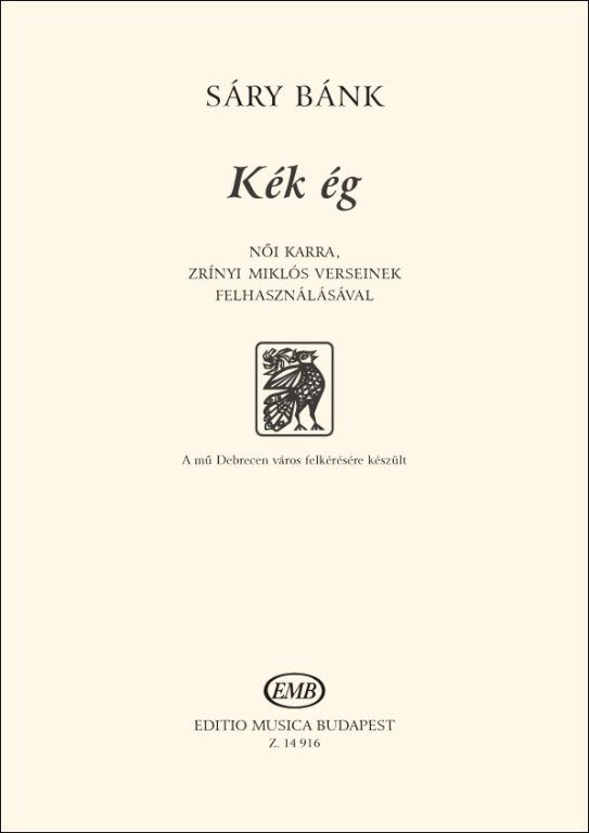 Bánk Sáry composed his choral work Blue Sky for female voices commissioned by the town of Debrecen for the Béla Bartók 26th International Choir Competition in 2014. The composer says about his work: 'I have used extracts of poems in Miklós Zr nyi's manuscript The Valiant Lieutenant. The choir sings the initial sentence in Latin in unison, then the music gradually becomes polyphonic before a playful, rhythmical passage takes its place in the middle of the piece. At the end of the almost five minute movement the beautiful text is sung by the choir in a homophonic chord progression. '