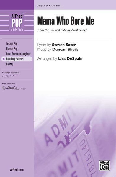 This incredible selection from the hit musical Spring Awakening is now available exclusively for SSA choirs. The arrangement begins first in a moving, pensive style, then kicks into high gear with a soulful, rhythmic rendition (as featured in the show's reprise of this song).