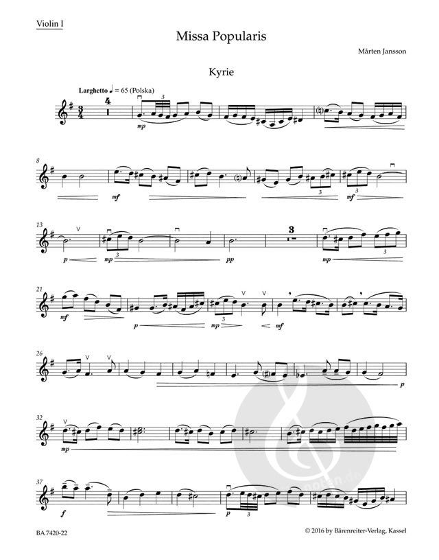 Wie der Name schon andeutet, hat die 'Missa Popularis' ihre musikalischen Wurzeln in der Volksmusik. Dies wird gleich in den ersten Takten des Kyrie deutlich, wo über einem Ostinato im Bass die Violine eine Melodie im Stile einer schwedischen Weise spielt.