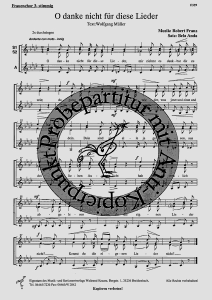 O danke nicht für diese Lieder