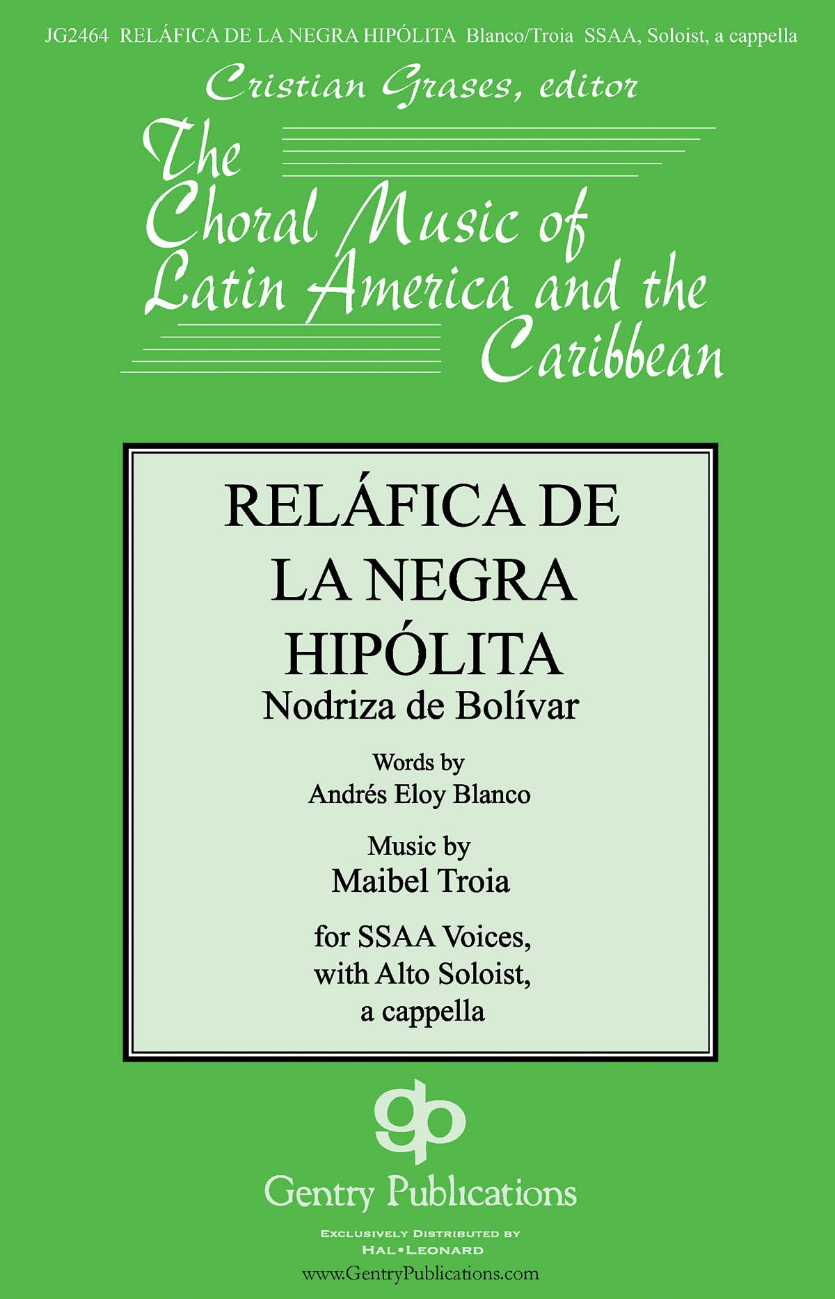 Simon Bolivar, a giant figure in the history of Latin America, dedicated a special place in his upbringing to Hipolita, a humble slave who was Bolivar's wet nurse and mother figure. Venezuelan poet laureate Andres Eloy Blanco captures a confrontational scene between Hipolita and Bolivar's mother. Venezuelan conductor and composer Maibel Troia translates the intensity of the moment in a highly rhythmic and dramatic composition that combines accented repeating melodies with chromatic harmonies, building towards a climatic finale. Gentry Publications is pleased to present one of the jewels of the 20th century Venezuelan choral repertoire.