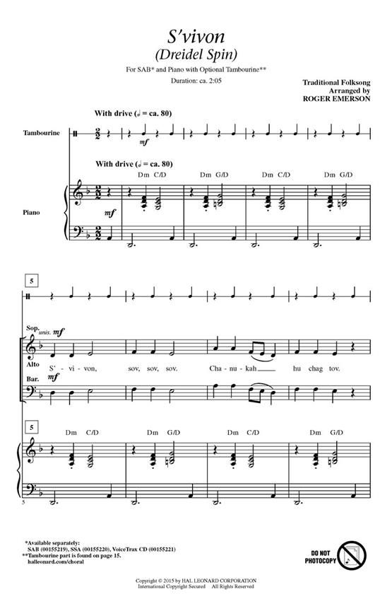 Developing choirs will enjoy this joyful Hanukkah celebration. Accessible and well-crafted, this setting has an energetic drive and the hand percussion will add plenty of sparkle!