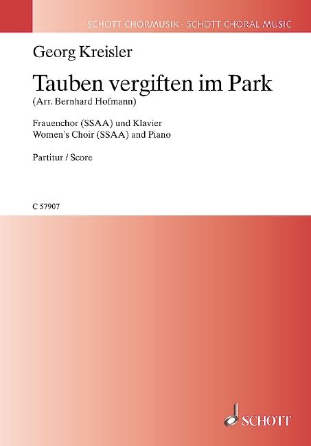 Georg Kreisler - das ist scharfer, tiefsinnig schwarzer Humor!Die Singphoniker haben Georg Kreislers bekannteste Lieder für Männerensemble arrangiert und auf CD aufgenommen. Die zugehörige Notenausgabe für Frauenchor SSAA mit Klavierbegleitung ist bei Schott Music erschienen (Georg Kreisler - Lieder und Chansons, ED22736). Ergänzend dazu sind Einzelausgaben aller Lieder aus dem Notenalbum erhältlich: Tauben vergiften im Park bringt das Verhältnis Taube-Mensch auf den Punkt und schlägt eine lustig beschriebene, wenn auch ethisch nicht ganz korrekte Vorgehensweise gegen den Taubenterror vor. Dieses ansprechende Arrangement mit Kreislers humoristischem Text sorgt im Konzert garantiert für ausgelassene Stimmung.