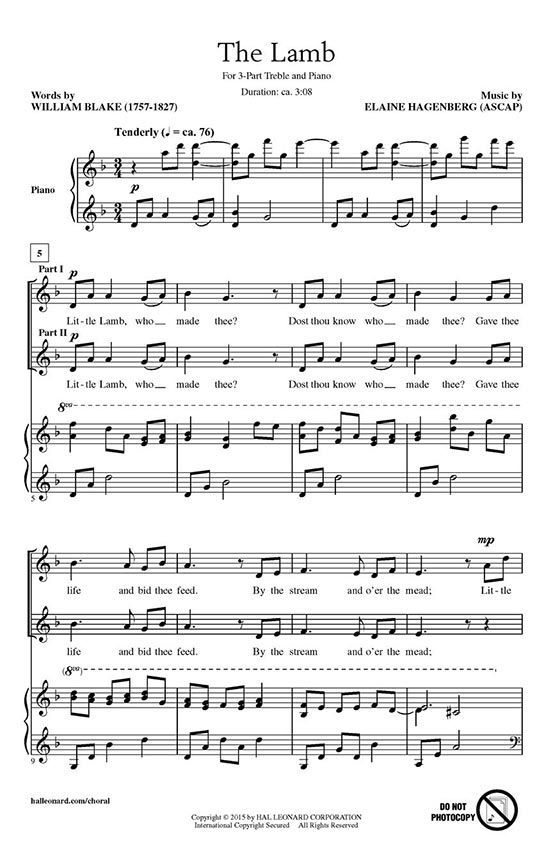 This tender setting of the William Blake poem is expressive with accessible, well-crafted voice parts and a delicate piano accompaniment. It is a perfect selection for building choral skills and for groups transitioning from SA to SSA music.