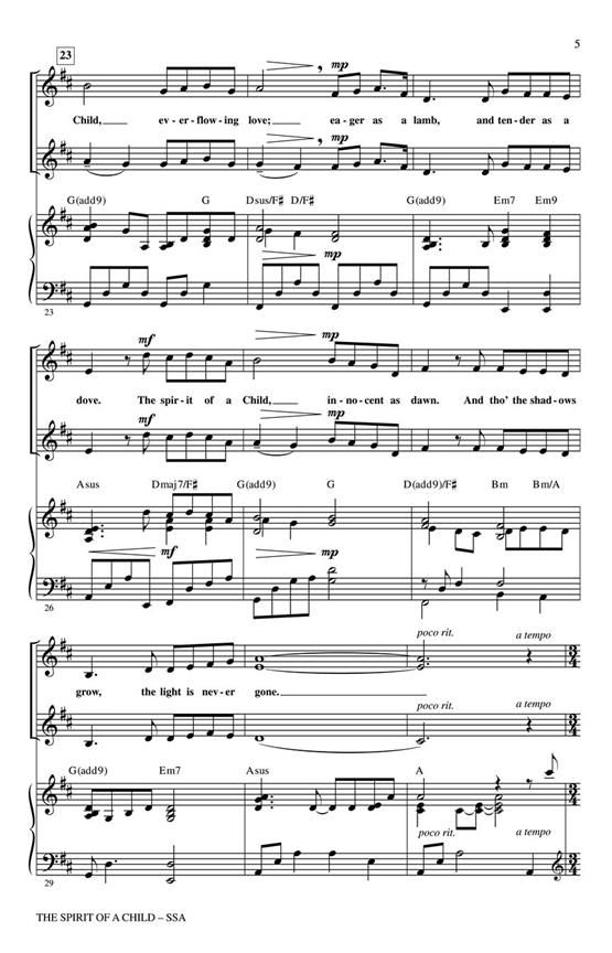 Delicate chords support the warm vocal textures in this gentle original that celebrates the innocence and joy of childhood and communicates the message that in the heart of every person, the spirit of a child lives on. Available separately: SATB, SSA. Duration: ca. 2:45.