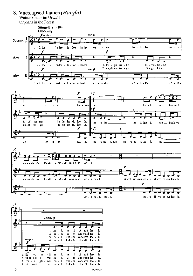 Tormis: 8 estnische lyrische Volkslieder