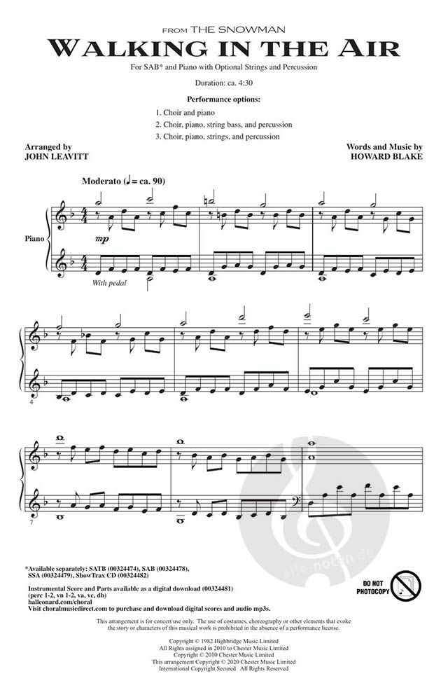 Raymond Briggs' 1978 children's picture book about a snowman come to life was made into a celebrated half-hour animated film in 1982. For the sequence in which the snowman flies with a boy named James to the north pole, Howard Blake composed this haunting, minor-chord driven theme, layered with images of nature, mountains, forests and streams. Don't miss your chance to program this beautiful song with the accompanying string and percussion parts.