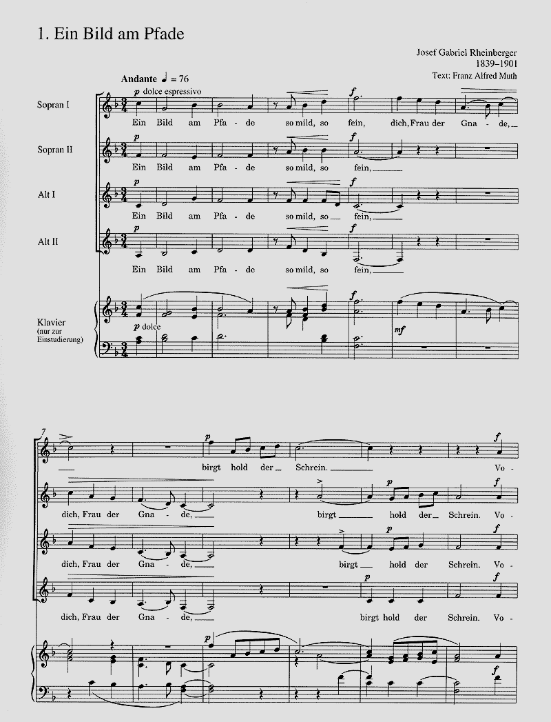 Rheinbergers Popularität zu Lebzeiten beruhte zu einem Großteil auf der weltlichen Chormusik. Seine meist als Auftragswerke entstandenen Zyklen für Männer- und Frauenchor a cappella füllen 2 Bände der Gesamtausgabe (Bd. 19 und 20). Man findet humorvolle Gesänge und Trinklieder, stimmungsvolle Vertonungen von Naturlyrik, leicht ausführbare, im Volkston gehaltene Lieder sowie einige anspruchsvollere Kompositionen für damalige Chorwettbewerbe.