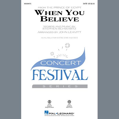 Stephen Schwartz's When You Believe won the Academy Award for Best Song in 1999, and John Leavitt gives his signature, dignified touch to his arrangement, adding strings and percussion to moving effect. The Hebrew prayer in the middle section of the piece is a great opportunity for cultural exploration.