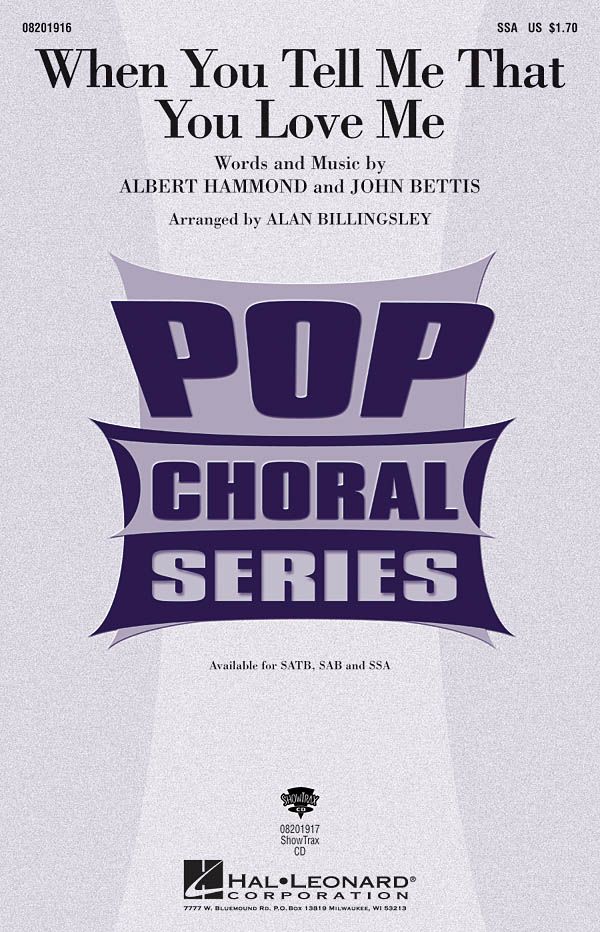 From the wildly popular American Idol Season 4 finalists, this pop hit was designated as the Disaster Relief Single for the American Red Cross and is now a superb choral chart by Alan Billingsley. Available for SATB, SAB and SSA. ShowTrax CD also available. Performance Time: Approx. 3:20