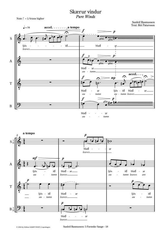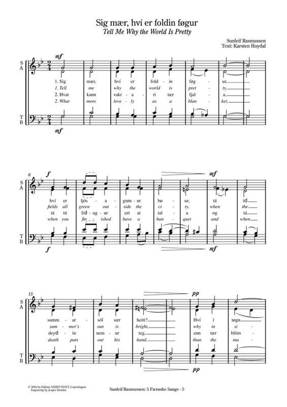 Sunleif Rasmussen's 5 Faeroske Korsange / 5 Faroese Choir Songs for Mixed Choir SATB (1982-92).