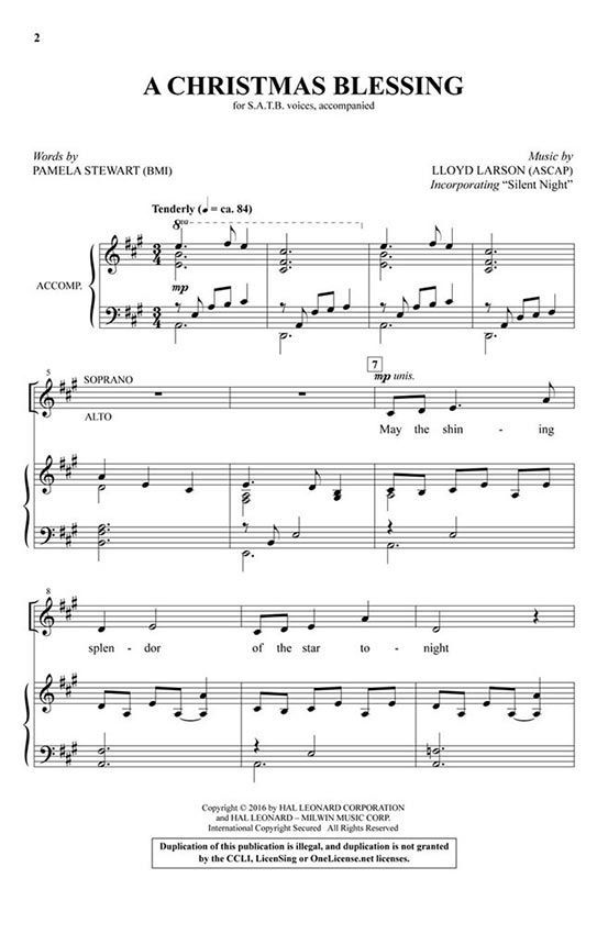 Verwendungen: Segen, Weihnachten, Heiligabend Bibelstelle: II. Chronik 7,14, Matthäus 2,10, Lukas 2,14 Diese Hymne bietet einen zärtlichen und intimen Moment für den Abschluss Ihrer Weihnachtskonzerte und -gottesdienste. Im Stil eines traditionellen Segens geschrieben, wird der Text sanft auf den Flügeln eines melodischen Themas getragen und von einem gefühlvollen Klaviersatz unterstützt. Das Erscheinen von Stille Nacht ist ein perfektes Ausrufezeichen für dieses bezaubernde originelle Lied und bietet die Möglichkeit der Beteiligung der Gemeinde. Perfekt für den Heiligen Abend!