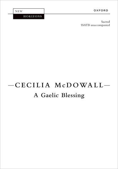 A Gaelic Blessing was commissioned by the University of Edinburgh, McDowall's alma mater, for performance by the Edinburgh University Singers conducted by Calum Robertson. This meditative, folk-style anthem is given a Scottish lilt through the use of Scotch snap rhythms and held drone-like vocal lines. The text is a traditional Scottish Gaelic blessing, translated by the Right Reverend Ian Paton, Bishop of St Andrews, Dunkeld, and Dunblane. McDowall chose this text for the 'warmth and simplicity' of the words that seem to 'resonate with the times in which we live'.