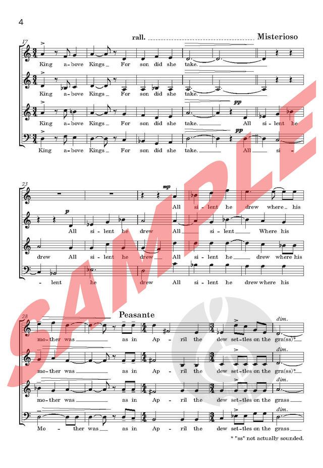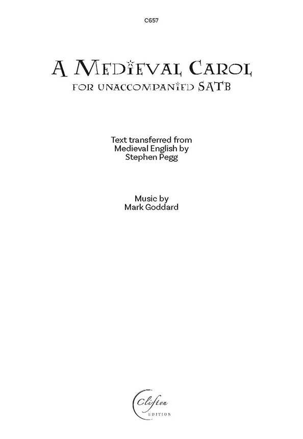 Der Preis bezieht sich auf eine Download-Lizenz für 30 Exemplare. A Medieval Carol ist für unbegleiteten Chor (SATB) und ist eine Vertonung eines Textes, der von Stephen Pegg aus dem mittelalterlichen Englisch übertragen wurde. Ursprünglich für die Headington Singers in Oxford geschrieben, wurde das Lied seit 1989 von vielen Chorvereinen und Schulchören aufgeführt. Dauer: ca. 3 Minuten.