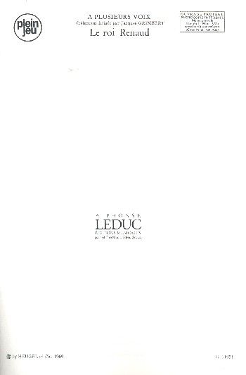 Le Roi Renaud / 3 Voix Egales ou 3 Voix Mixtes