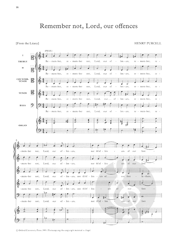 An anthology of Purcell's most popular anthems, covering the whole range of full, verse, and symphony anthems. The collection consists of specially prepared performing editions, with fully realized organ parts and easily playable score reductions of the anthems with strings. String parts for O sing unto the Lord and Rejoice in the Lord Alway are available on hire.