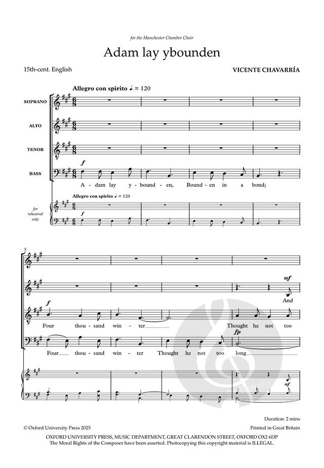 Dies ist eine charaktervolle Vertonung eines klassischen mittelalterlichen Weihnachtstextes. Festlich und tänzerisch verkörpert die Musik die Freude an der Weihnachtszeit und feiert die Erlösung der Menschen durch Christus. Die Energie der Musik rührt von ihrem schnellen Puls, gepaart mit dem Wechselspiel von Zweier- und Dreiermetrum. Das Stück ist temperamentvoll und verwendet den dorischen Modus und lebhafte Rhythmen, die über gesungenen Borduntönen tanzen.