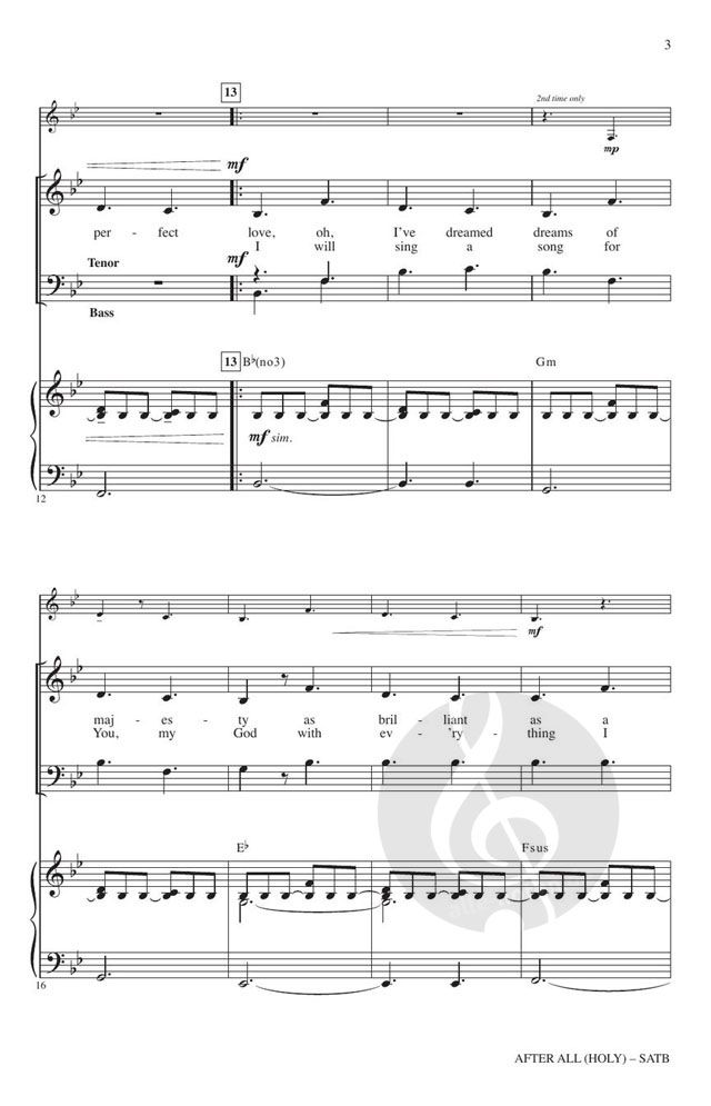 Something very fresh is found in this new arrangement of a popular Christian radio song! Featuring a dream team of songwriters, the anthem celebrates the holiness and glory of the Almighty and is set as an emotive moment for worshippers. This ready-to-sing anthem is a great choice for younger choirs or praise teams.