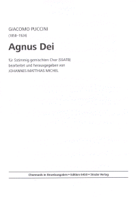 für 5-stimmig gem. Chor (SSATB) bearbeitet und herausgegeben von Johannes Matthias Michel. Reihe: Chormusik in Einzelausgaben.