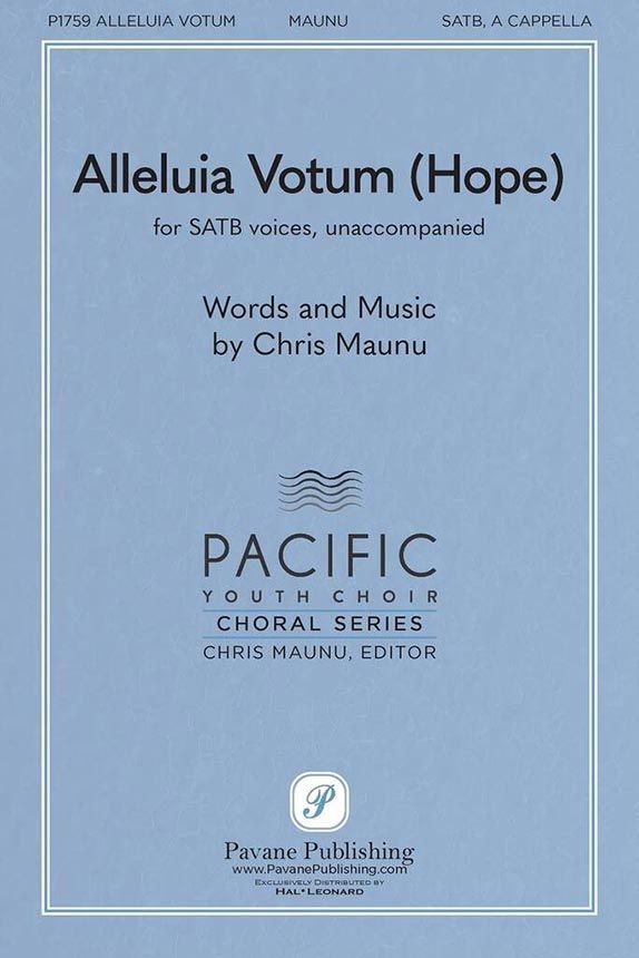 Chris Maunu wird schnell zu einem hoch angesehenen und anerkannten Namen für seine hervorragende Arbeit mit Jugendchören. Er ist der künstlerische Leiter des Pacific Youth Choir in Portland, OR, und Pavane freut sich, die Pacific Youth Choir Series, Chris Maunu, Editor, anzukündigen. Votum ist lateinisch für Hoffnung, und dieses Stück für fortgeschrittene Jugendchöre oder Erwachsene bekräftigt, dass wir Hoffnung von innen heraus finden werden.