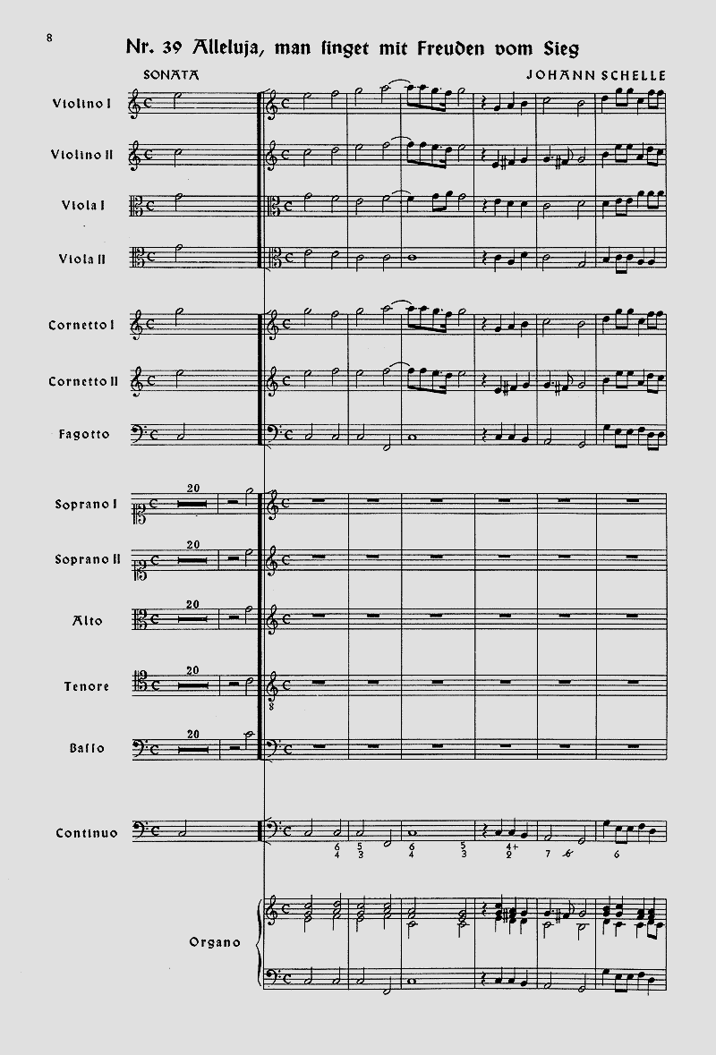 Soli o Auswahlchor SSATB, Coro SSATB, Fg, 2 Zk (2 Tr o Ob), 2 Vl, 2 Va, Bc