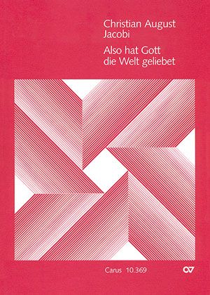 Weihnachtskantate - Der Bach-Zeitgenosse Christian August Jacobi gehört zu den Komponisten, die die mitteldeutsche Musiklandschaft im 18. Jahrhundert nachhaltig mit geprägt haben, da das Wirken des Thomaskantors im Wesentlichen auf Leipzig beschränkt blieb. Jacobis Kantaten sind musikalisch abwechslungsreiche Werke und leicht zu bewältigen. Fünf der sechs Sätze des Weihnachtskantate 'Also hat Gott die Welt geliebet' für Soli, Chor, Streicher und Basso continuo - der Text des Eingangschors ist dem Johannes-Evangelium entnommen - liegen Strophen von Luthers Weihnachtslied 'Vom Himmel hoch, da komm ich her' zugrunde, was dem Werk einen volkstümlichen Charakter verleiht. Die abwechslungsreiche Instrumentation und der Wechsel von Chorsätzen und Solistenduos verleihen der Kantate eine klangliche Vielfalt, die durch den Einsatz einer Harfe (ad libitum) noch gesteigert werden kann. Solo SATB, Coro SATB, 2 Vl, Vc/Cb, Arpa ad lib, Bc.