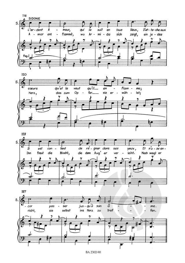 Drama héroique in 5 Akten. Klavierauszug nach dem Urtext der Gluck-Gesamtausgabe. Sopran solo (9), Alt solo, Tenor solo (3), Bariton solo (2), Bass solo, Gemischter Chor, Flöte (2), Oboe (2), Klarinette in b (2), Fagott (2), Horn (2), Trompete (2), Pauke, Streicher - Klavierauszug